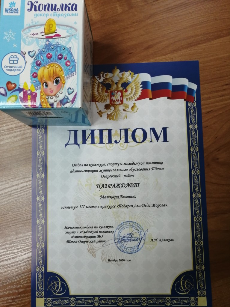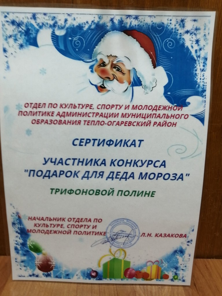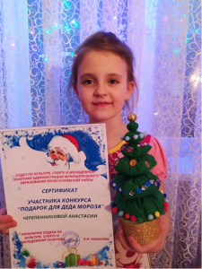 Обучающиеся объединений «Мягкая игрушка» приняли участие в конкурсе «Подарок для Деда Мороза». Машкара Евгения, занявшая 3 место, награждена дипломом. Сертификатом за участие награждены ТрифоноваПолина и Черепенникова Анастасия