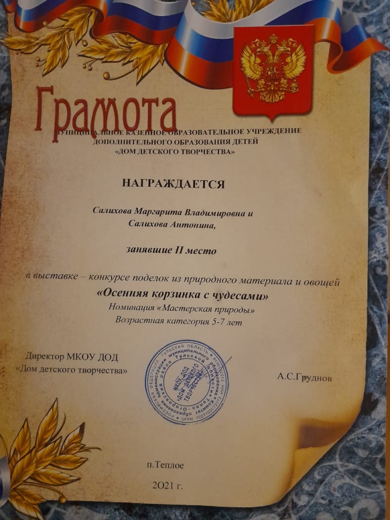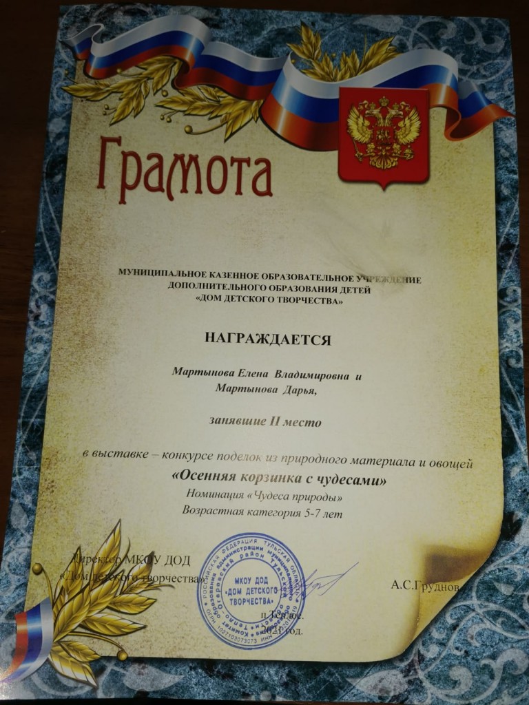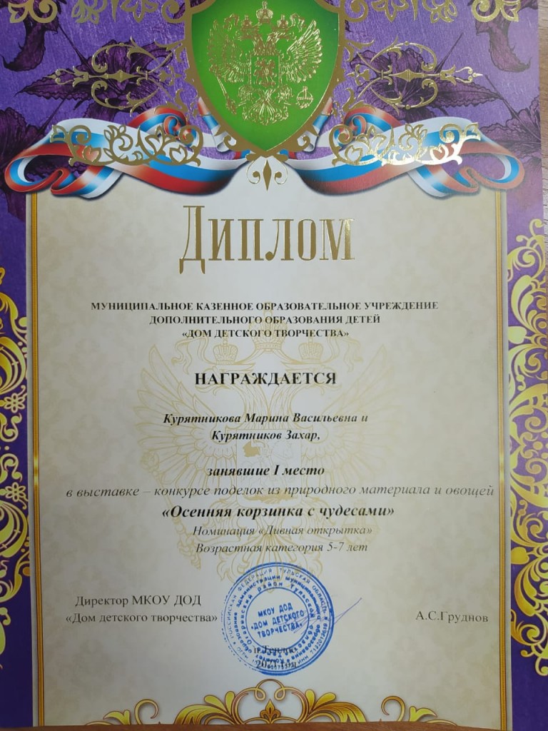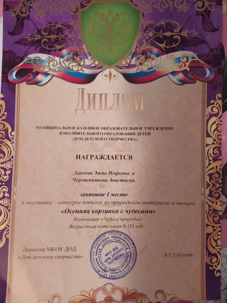 В ДДТ прошел конкурс поделок из природного материала и овощей «Осенняя корзинка с чудесами». В ней приняли участие дети вместе с родителями. Итоги выставки подводились по номинациям. Победители награждены дипломами и сладкими призами.