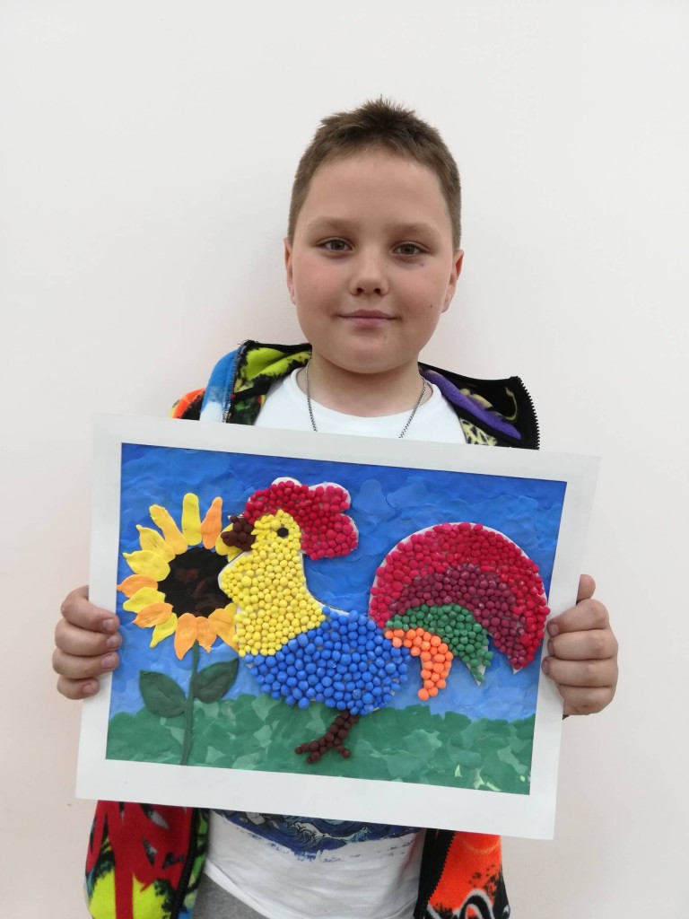 Дубровин Михаил выполнил аппликацию из воздушного пластилина – «Сельский житель». Обучающийся стал лауреатом 1 степени в возрастной категории 9-10 лет.