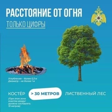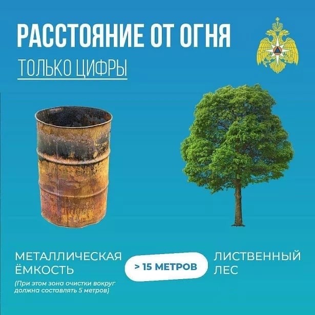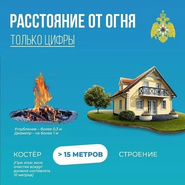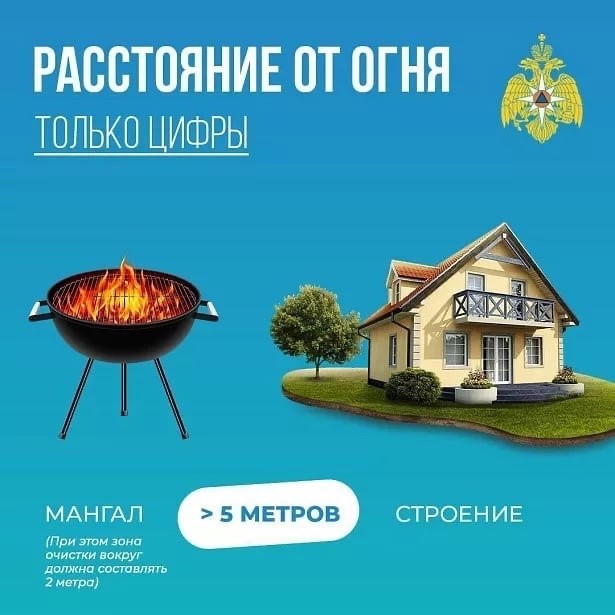 МЧС Тульской области подготовило простые карточки, которые помогут разобраться, на каком расстоянии от деревьев и строений можно безопасно разжечь мангал или костёр.