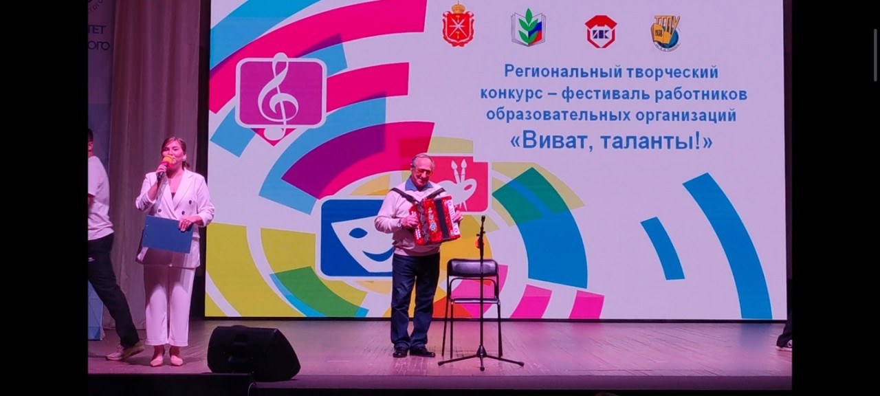27 сентября, на сцене государственного педагогического университета им. Л.Н. Толстого прошёл очный тур регионального конкурса – фестиваля работников образовательных организаций « Виват, таланты». МКОУ ДОД « Дом детского творчества представил педагог дополнительного образования – Шуршаков Иван Алексеевич. В его исполнении прозвучала «Цыганочка» в обработке С. Власова. С первых нот зал взорвался аплодисментами и на протяжении всего выступления поддержка публики не утихала. Все с замиранием сердца ждали подведения итогов и не зря! Иван Алексеевич получил заслуженное I МЕСТО. Поздравляем!!!