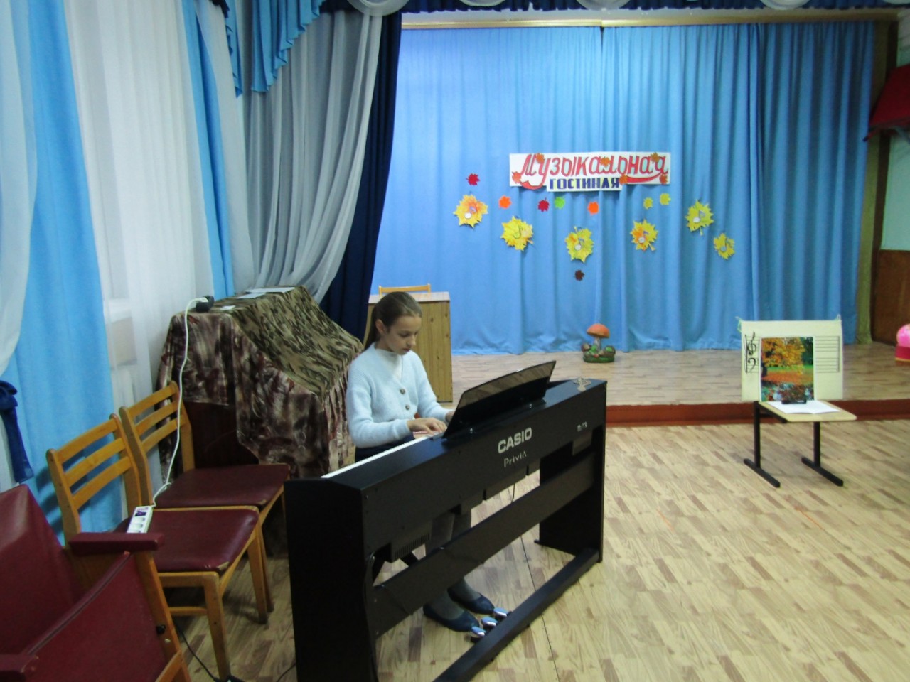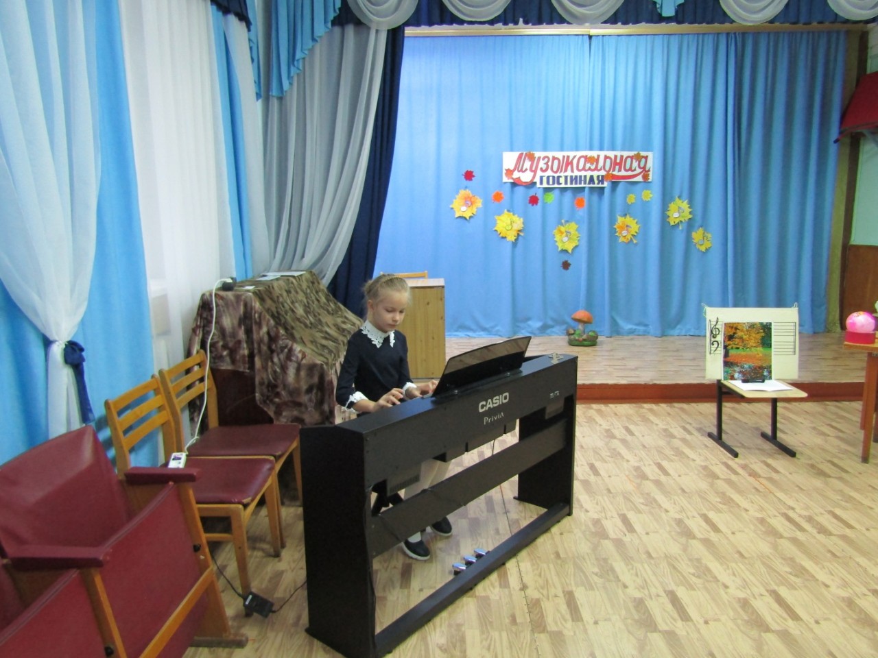 2 ноября педагог дополнительного образования объединения «Фортепиано» Груднова Татьяна Николаевна проела музыкальную гостиную «Осенняя сказка». Обучающиеся исполнили музыкальные произведения, играли в музыкальные развивающие игры, пели песни. В мероприятии активно участвовали родители. Порадовал своим выступлением Назаренко Матвей.