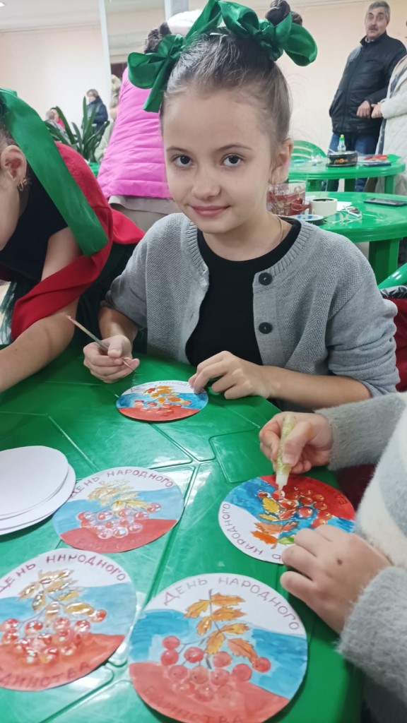 Педагоги дополнительного образования МКОУ ДОД «Дом детского творчества» приняли активное участие в проведении районного мероприятия, посвященного празднованию Дня народного единства. Ланчева Э.И., Акимова И.Н., Картавая Г.В., Оводкова И.В. провели тематические мастер-классы. Все желающие могли сделать, своими руками, голубя мира, российский флаг Триколор, нарисовать эмблему праздника. Каждый участник мастер-классов получил ни только яркие впечатления и творческие навыки, но и познавательную информацию о праздновании Дня народного единства. В концертной программе приняли участие солисты вокального коллектива «Забава», педагог Колобаева А.И. Они исполнили песни «Три цвета флага» и «Я живу в России».