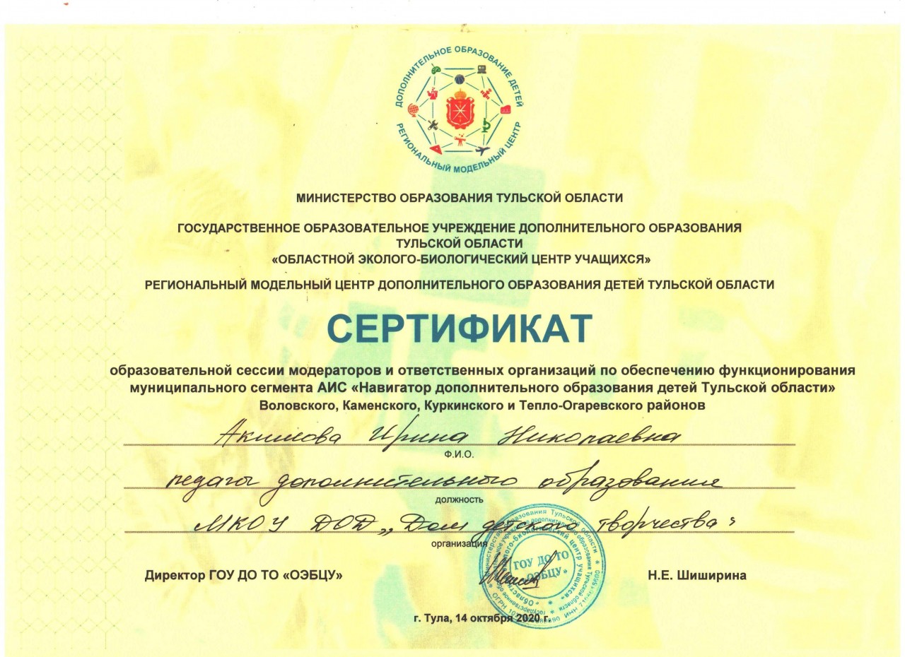 Образовательная сессия модераторов и ответственных организаций по обеспечению функционирования муниципального сегмента АИС «Навигатор дополнительного образования детей Тульской области» Воловского, Каменского, Куркинского и Тепло-Огаревского районов