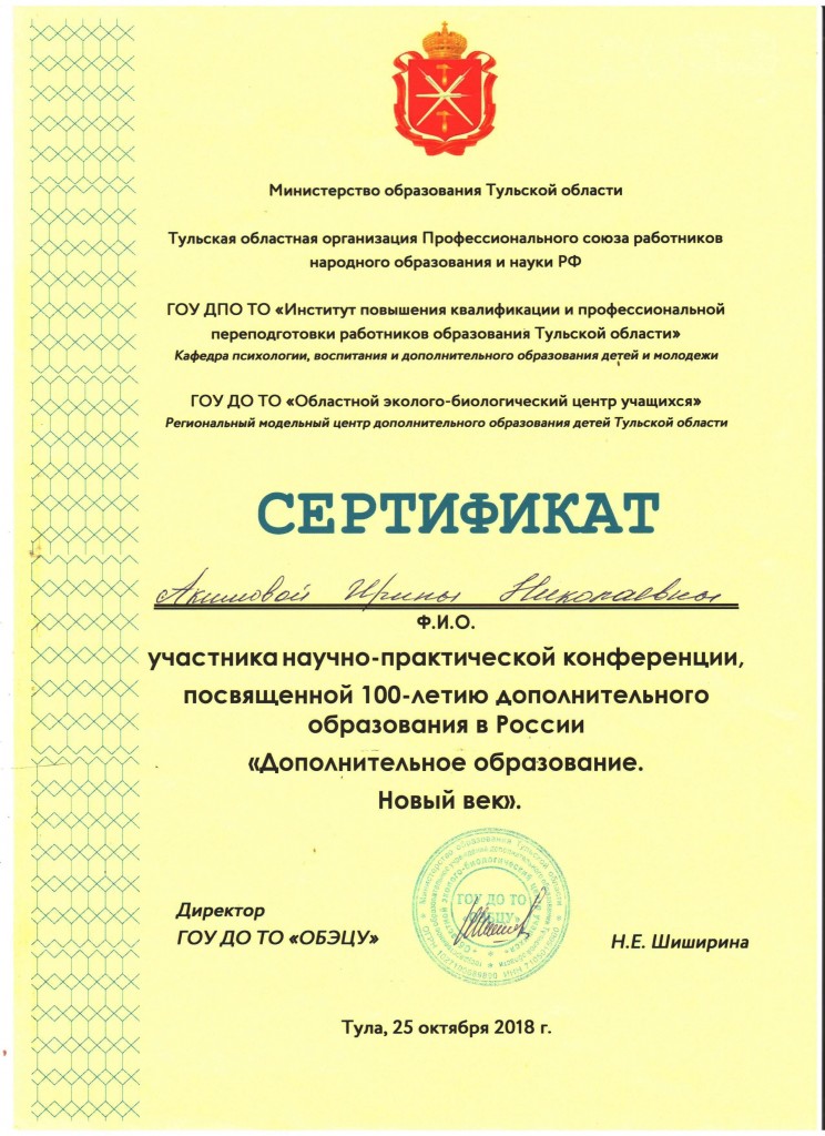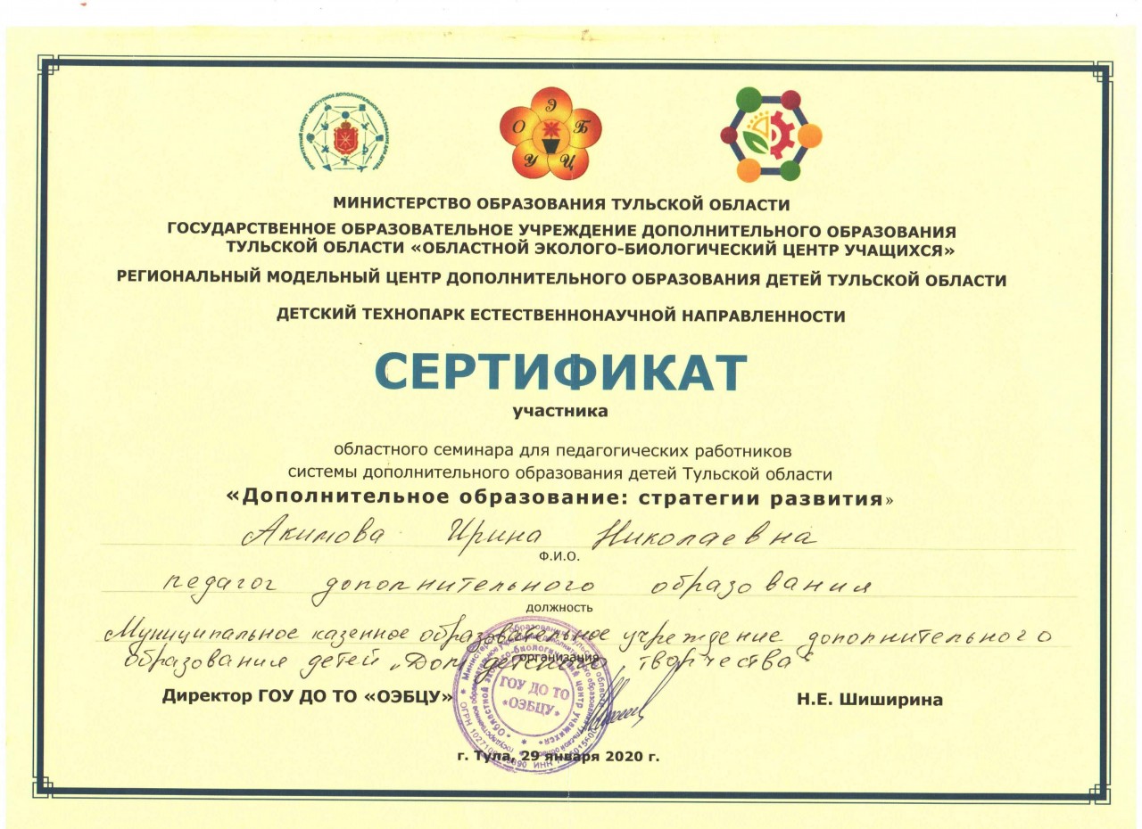 Областной семинар для педагогических работников системы дополнительного образования детей Тульской области «Дополнительное образование: стратегии развития»