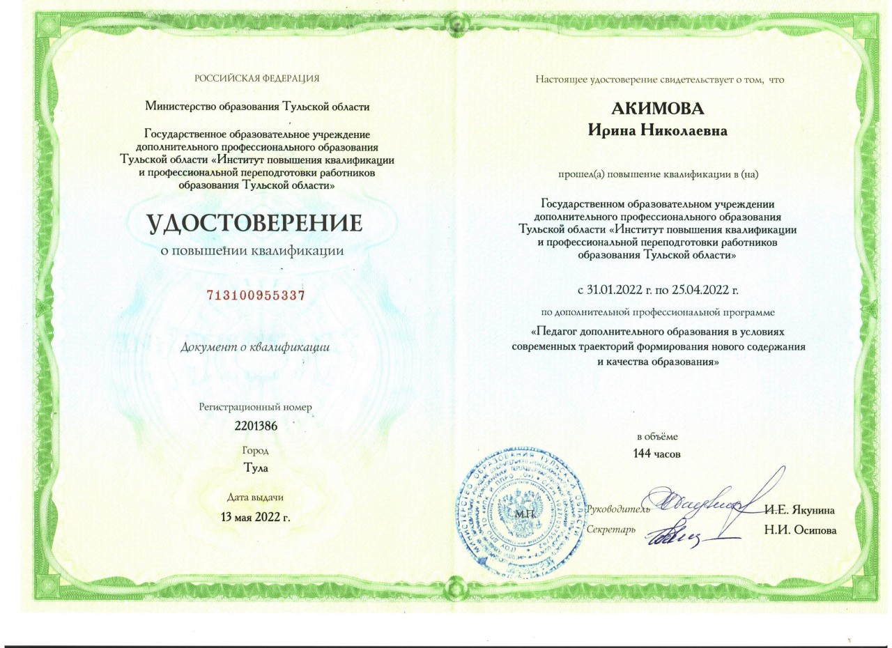 Дополнительная профессиональная программа «Педагог дополнительного образования в условиях современных траекторий формирования нового содержания и качества образования»