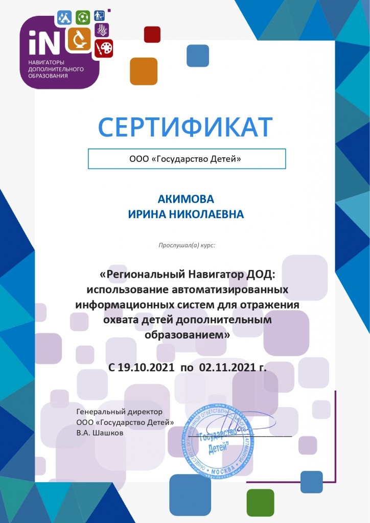 Курс «Региональный Навигатор ДОД: использование автоматизированных информационных систем для отражения охвата детей дополнительным образованием»