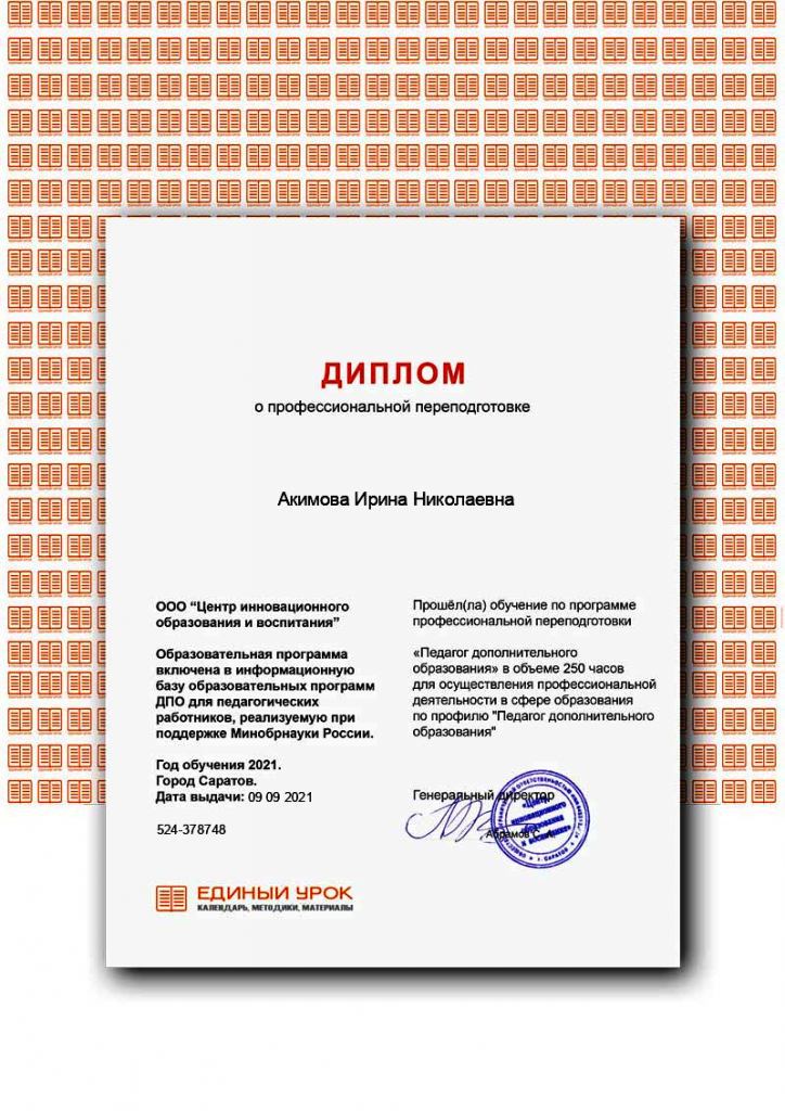 Профессиональная переподготовка по программе «Педагог дополнительного образования»